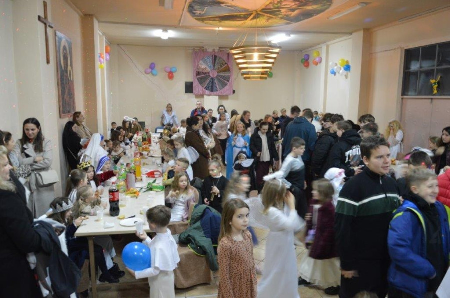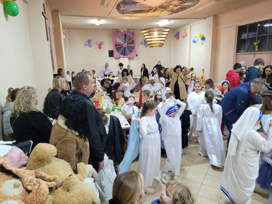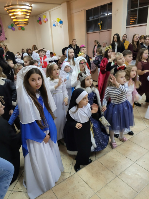Siódmy raz w naszej parafii odbył się Bal Wszystkich Świętych. To pomysł naszego wikariusza ks. Piotra Auguścika i młodzieży oazowej. - Chcieliśmy zrobić coś radosnego, coś co będzie alternatywą dla pogańskiego obrzędu halloween i wskazaniem, jak piękna może być nasza droga do świętości - mówi ks. Piotr. Nasza parafialna stodoła 31 X zamieniła się w salę, gdzie tańczyli, śpiewali, jedli i śmiali się święci, a właściwie nasze dzieciaki i młodzież przebrani za świętych, w liczbie wyjątkowej – pond 100 osób. Całość spotkania poprowadziła młodzież oazowa. Ks. Piotr wraz z animatorami rozstrzygnęli konkurs na najpiękniejszy strój świętego. Na podium stanęli: św. Antoni z Padwy, św. Barbara i św. Faustyna Kowalska. To był wspaniały i wyjątkowy wieczór. Dziękujemy wszystkim, którzy zaangażowali się w przygotowanie tego pięknego wydarzenia. Do zobaczenia za rok.