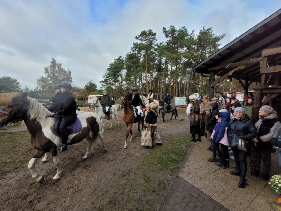 W sobotę - 18 X br. w stadninie koni „Carino” w Gulinie, już po raz 13. odbyło się spotkanie, któremu patronował św. Hubert. Właściciel stadniny Michał Wolski wraz ze swoją córką Klaudią, rozpoczynając spotkanie, przywitali zaproszonych gości i zaprosili do wspólnego świętowania. W tym roku przybyło na spotkanie 54 jeźdźców, niektórzy z odległych stron Polski. Ks. Ireneusz Kosecki - proboszcz zakrzewskiej parafii, tradycyjnie odmówił litanię ku czci św. Huberta i dokonał poświęcenia jeźdźców i koni. Następnie wszyscy udali się na „pogoń za lisem” juniorów i seniorów. W role narratora gonitwy, wcielił się Przemysław Bednarczyk - znakomity historyk, twórca inscenizacji historycznych i wybitny znawca polskiej kawalerii. Jego profesjonalny komentarz przy trafnie dobranej muzyce, tworzyły niezwykły klimat, co pozwoliło uczestnikom spotkania - mimo kapryśnej pogody – przeżyć radość spotkania miłośników koni i kniei. Do zobaczenia za rok!