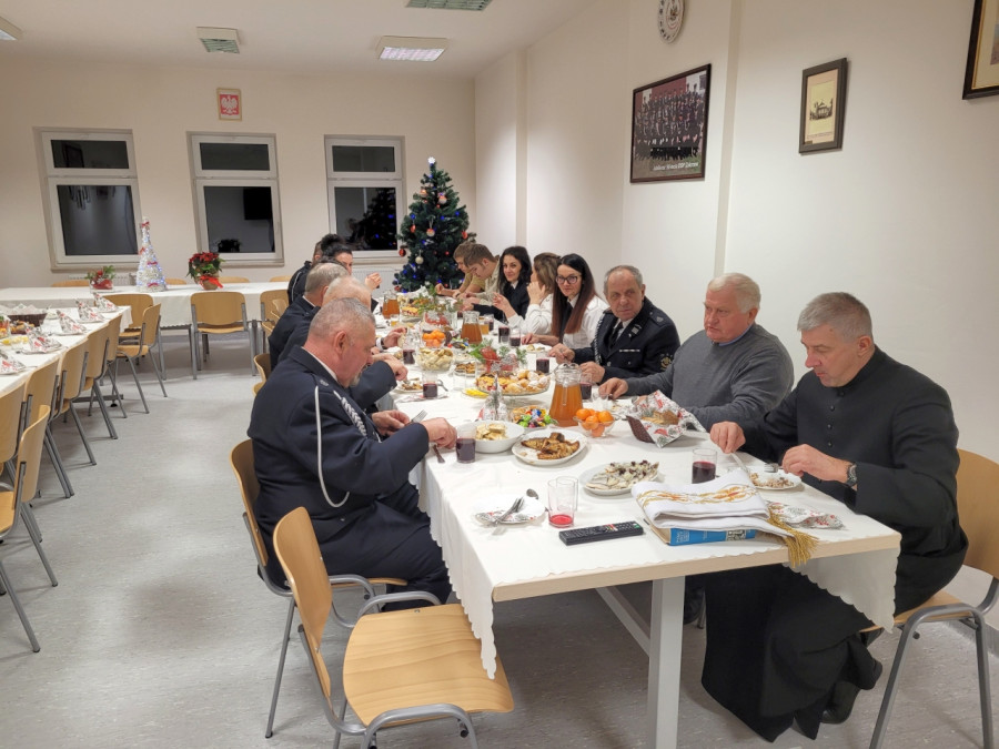 W niedzielę – 21 grudnia, o godz. 18.00 w siedzibie OSP Zakrzew odbyło się spotkanie opłatkowe. Wzięli w nim udział druhowie i druhny wraz z księżmi naszej parafii: proboszczem ks. Ireneuszem Koseckim i wikariuszem ks. Piotrem Auguścikiem. Niestety cześć druhów wyjechała na akcję gaśniczą, do poważnego pożaru. To pokazuje jak trudnym i wymagającym poświęcenia jest praca druha – strażaka. Łamanie się opłatkiem, składanie życzeń, śpiew kolęd i wspólny posiłek przy suto zastawionym stole, były okazją do okazania sobie wdzięczności i radości bycia we wspólnocie