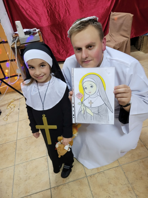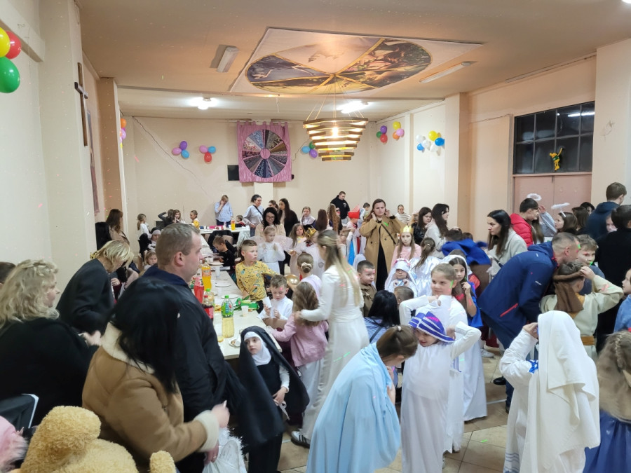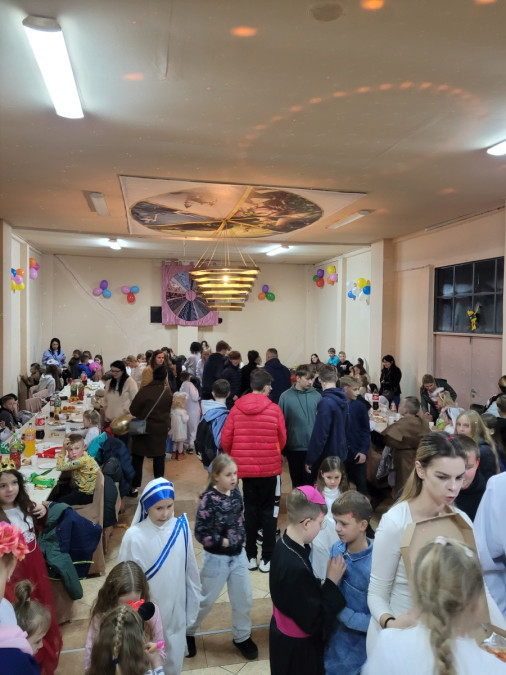 Siódmy raz w naszej parafii odbył się Bal Wszystkich Świętych. To pomysł naszego wikariusza ks. Piotra Auguścika i młodzieży oazowej. - Chcieliśmy zrobić coś radosnego, coś co będzie alternatywą dla pogańskiego obrzędu halloween i wskazaniem, jak piękna może być nasza droga do świętości - mówi ks. Piotr. Nasza parafialna stodoła 31 X zamieniła się w salę, gdzie tańczyli, śpiewali, jedli i śmiali się święci, a właściwie nasze dzieciaki i młodzież przebrani za świętych, w liczbie wyjątkowej – pond 100 osób. Całość spotkania poprowadziła młodzież oazowa. Ks. Piotr wraz z animatorami rozstrzygnęli konkurs na najpiękniejszy strój świętego. Na podium stanęli: św. Antoni z Padwy, św. Barbara i św. Faustyna Kowalska. To był wspaniały i wyjątkowy wieczór. Dziękujemy wszystkim, którzy zaangażowali się w przygotowanie tego pięknego wydarzenia. Do zobaczenia za rok.