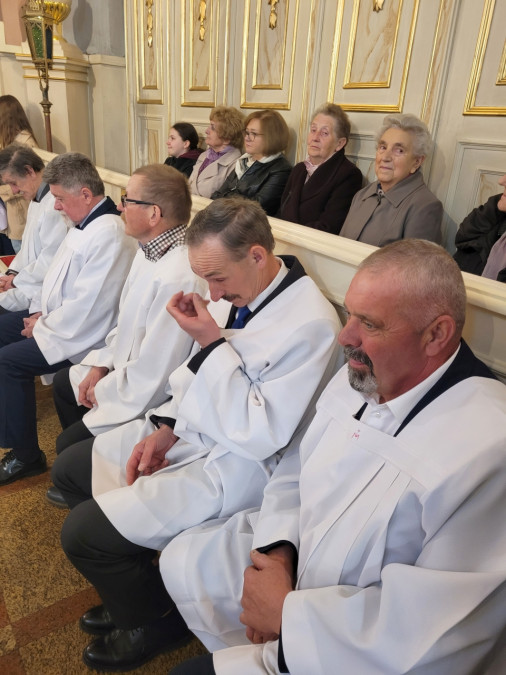 W niedzielę, 22 marca br. na Mszy św. o godz. 11.00 modliliśmy się w intencji naszego ks. proboszcza – ks. Ireneusza Koseckiego, z racji jego imienin i 61. rocznicy urodzin. Mszy św. przewodniczył ks. Michał Gawęda z parafii pw. Wniebowzięcia Najświętszej Maryi Panny w Solcu nad Wisłą. Przedstawiciele poszczególnych grup parafialnych dziękowali Bogu za dar jego posługi kapłańskiej w naszej parafii, składając życzenia, by dalsze lata obfitowały w zapał duszpasterski, nowe pomysły, a przede wszystkim owocne prowadzenie ludzi do Chrystusa.