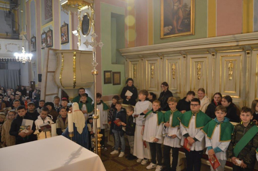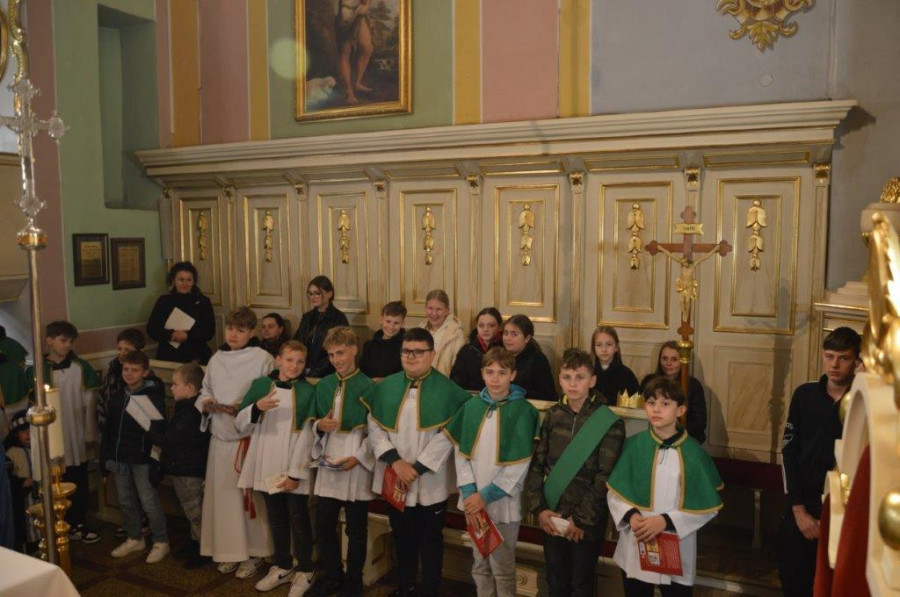 Takie hasło towarzyszyło uczestnikom nabożeństw różańcowych, w nawiązaniu do kanonizacji 15-letniego św. Carlo Acutis. Przez cały miesiąc, zarówno w dni powszednie jak i w niedziele, o godz. 17.00, ponad 80-osobowa grupa dzieci i 30-osobowa grupa młodzieży, przygotowująca się do przyjęcia sakramentu bierzmowania oraz dorośli, spotykali się by uwielbiając Maryję, szukać przez Jej pośrednictwo najlepszej drogi do Boga. Na pierwszym nabożeństwie różańcowym dzieci otrzymały planszę, do której codziennie przyklejały obrazek z życiorysem tego niezwykłego włoskiego świętego. W piątek - 31 października, odbyło się ostatnie spotkanie różańcowe, na które przyszło 100 dzieci. Ks. proboszcz Ireneusz Kosecki, serdecznie podziękował dzieciom za gorliwe uczestnictwo w różańcu. Wyraził także wdzięczność rodzicom i dziadkom dzieci za opiekę i pomoc w bezpiecznym dotarciu najmłodszych parafian do naszej świątyni. Dzieci otrzymały czekolady i książki z życiorysem św. Carlo. Ponad 30 z nich miało 100 % frekwencję. Na zakończenie modlitewnego spotkania dzieci stanęły do pamiątkowego zdjęcia wykonanego przed głównym ołtarzem