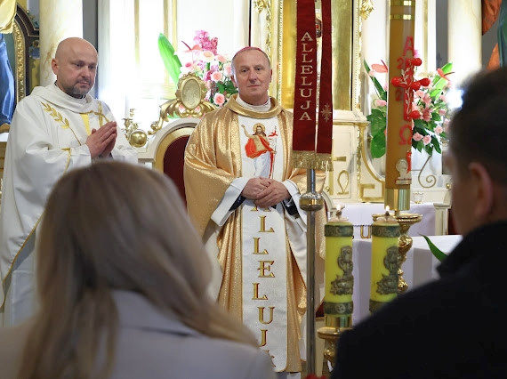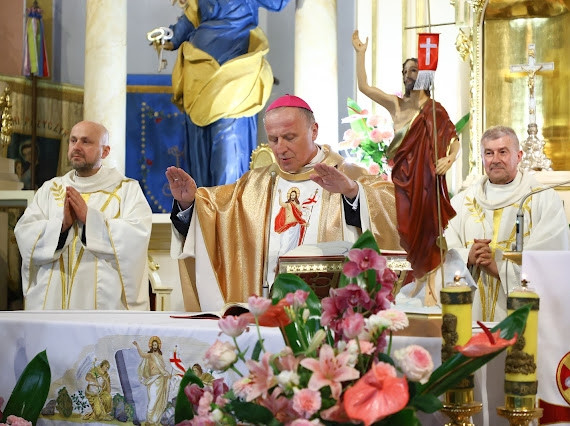 Liturgii przewodniczył i Sakramentu udzielił ks.Bp Marek Solarczyk, pasterz naszej diecezji. Wraz z nim Eucharystię celebrowali proboszcz ks. Ireneusz Kosecki - proboszcz oraz ks. Dominik Dryja.