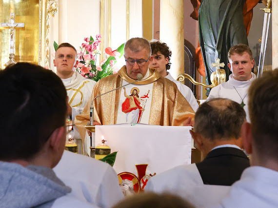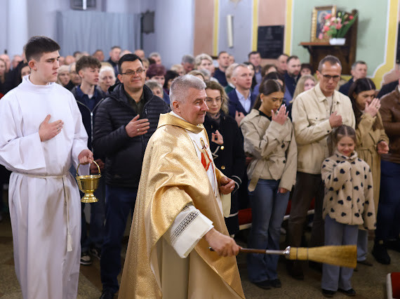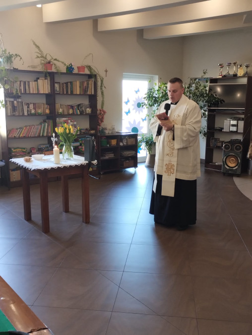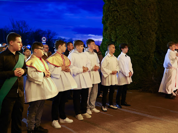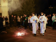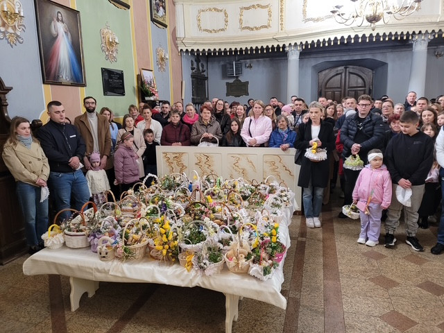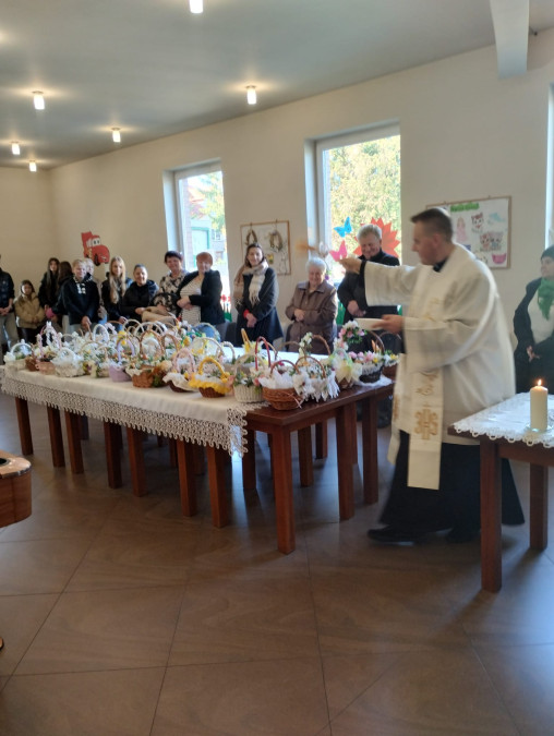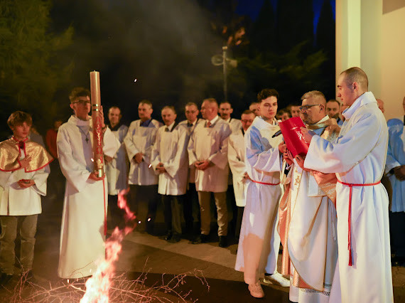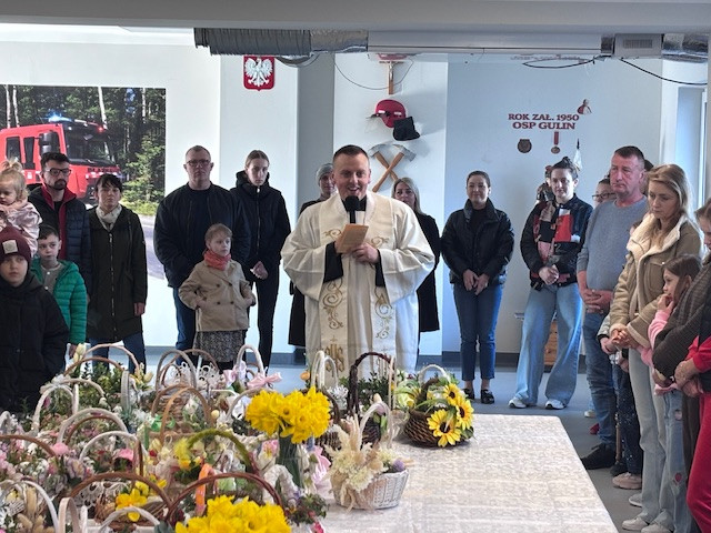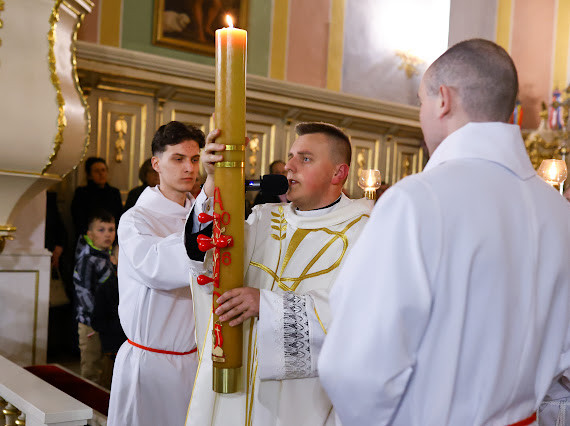 Wielka Sobota - jest dniem niezwykle bogatym w przeżycia religijne i piękną liturgię. W godzinach przedpołudniowych w kościele i po wioskach zostały poświęcone pokarmy wielkanocne. Przez cały dzień trwała adoracja Jezusa Eucharystycznego w „Grobie”. Adorowali strażacy z poszczególnych jednostek OSP naszej parafii, Ułani z Kawalerii Ochotniczej w barwach 11 pułku Ułanów Legionowych przy stadninie Carino w Gulinie oraz grupy parafialne. O godz. 20.00 rozpoczęła się Wigilia Paschalna, której przewodniczył proboszcz ks. Ireneusz Kosecki. Składa się ona z kilku części: obrzędu światła, Liturgii Słowa, Liturgii Chrzcielnej i Liturgii Eucharystycznej. Orędzie Wielkanocne - w wykonaniu organisty Jarosława Szczepaniaka, przypominało nam o przejściu z nocy grzechu do blasku bożej łaski. W homilii, którą wygłosił ks. proboszcz, wybrzmiała zachęta, by z Chrystusem Zmartwychwstałym podnosić się z grzechów i żyć w bliskości Boga, dokonywać nieustannej „Paschy” – przejścia od niewoli grzechu ku wolności serca, by nie ulegać zwątpieniu, ale ufać Chrystusowi - mówił kaznodzieja.