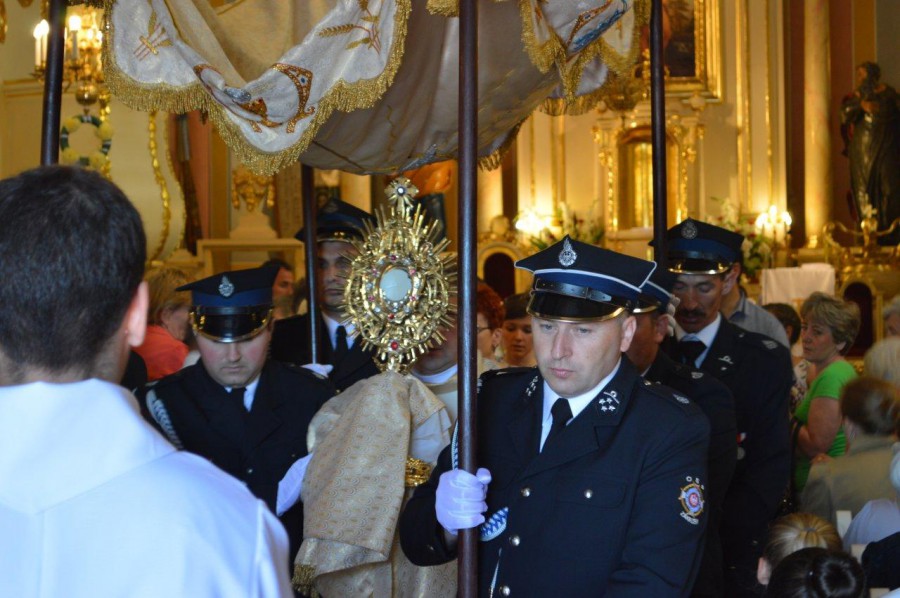 W procesji wzięła udział niemal cała parafia: przedszkolaki, dzieci I - komunijne, dziewczynki sypiące kwiatki, ministranci poszczególnych grup wiekowych, strażacy z OSP: z Zakrzewa, Gulina, Gulinka i Marianowic z pocztami sztandarowymi, członkowie KŻR, osoby niosące feretrony, chorągwie i różaniec. Wspólny śpiew pieśni eucharystycznych, prowadzony przez naszego organistę Bartłomieja Składanka, wyrażał żarliwą miłość do Jezusa Eucharystycznego. Całość uroczystości zakończyła się w świątyni odśpiewaniem Te Deum i przyjęciem uroczystego błogosławieństwa Najświętszym Sakramentem. (Fot: Waldemar Skorza)