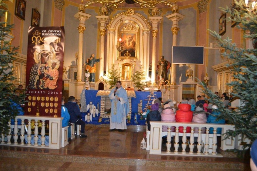 Od 28 listopada br., przez kolejne 22 dni, ponad 60 osobowa grupa dzieci spotykała się na Mszy św. Roratniej. Duże to wyzwanie, nie tylko dla dzieci, by o godz. 6.00 zacząć śpiew Godzinek, a o 6.20 uczestniczyć we Mszy św. ku czci Niepokalanej Matki Bożej. Ciekawy program tegorocznych Rorat sprawił, iż z rannym wstawaniem nie było większego problemu. Wspólnie poznawaliśmy historię obrazu Matki Częstochowskiej, historię Jasnej Góry i Ojców Paulinów - stróżów sanktuarium jasnogórskiego. Scenografia adwentowa umieszczona przed ołtarzem, wskazywała nam na szczególny charakter tego okresu liturgicznego. Schody po których każdego dnia „schodził” do żłóbka Pan Jezus - w symbolu Małego Dzieciątka, pozwalały nam czuwać razem z Maryją. Cieszyła nas także obecność na Roratach, młodzieży przygotowującej się do przyjęcia sakramentu bierzmowania. Dzieciom i młodzieży towarzyszyły panie katechetki: Bożena Chłopecka i Beata Piasek. Dzieci uczestniczące we Mszy św. otrzymały pierwszego dnia plansze z wizerunkiem Matki Bożej Częstochowskiej, by w kolejne dni przyklejać do niej obrazek z wotum ku czci Maryi. Na ostatnim roratnim spotkaniu - 23 grudnia, 65 dzieci otrzymało pamiątkowy obrazek Czarnej Madonny z Częstochowy. Na zakończenie wszyscy stanęli do pamiątkowego zdjęcia z sercami pełnymi wdzięczności za ten święty czas Roratnich spotkań z Chrystusem, Jego i naszą Matką - Maryją.