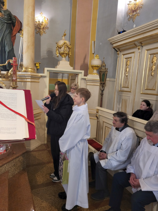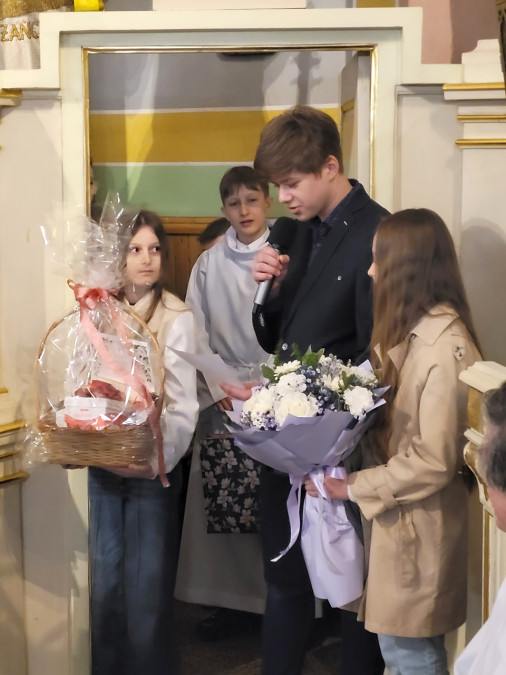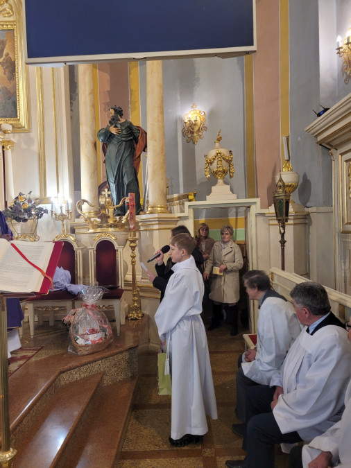 W niedzielę, 22 marca br. na Mszy św. o godz. 11.00 modliliśmy się w intencji naszego ks. proboszcza – ks. Ireneusza Koseckiego, z racji jego imienin i 61. rocznicy urodzin. Mszy św. przewodniczył ks. Michał Gawęda z parafii pw. Wniebowzięcia Najświętszej Maryi Panny w Solcu nad Wisłą. Przedstawiciele poszczególnych grup parafialnych dziękowali Bogu za dar jego posługi kapłańskiej w naszej parafii, składając życzenia, by dalsze lata obfitowały w zapał duszpasterski, nowe pomysły, a przede wszystkim owocne prowadzenie ludzi do Chrystusa.