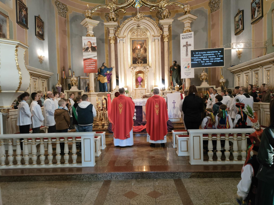 13 kwietnia, w Niedzielę Palmową rozpoczęliśmy Wielki Tydzień. O godz. 11.00 licznie zebrani parafianie zgromadzili się przed świątynią, aby wysłuchać Ewangelii o wjeździe Jezusa do Jerozolimy. Następnie proboszcz ks. Ireneusz Kosecki poświęcił palmy, dziękując szczególnie dzieciom i ich opiekunom, za wykonanie 3 dużych, pięknych palm - Bożenie Chłopeckiej oraz dzieciom ze Szkoły Podst. w Zakrzewie; Monice Wierzbie i Paulinie Firlej oraz dzieciom z Przedszkola Samorządowego w Zakrzewie; Monice Wierzbie, Monice Grodny, Edycie Maj oraz dzieciom z Niepublicznego Przedszkola „Hania”. Procesja z palmami wokół świątyni wyglądała imponująco i bardzo radośnie; była wyznaniem wiary w Chrystusa - Mesjasza, Syna Dawidowego.