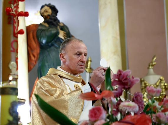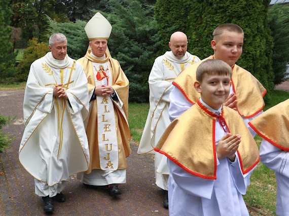 Liturgii przewodniczył i Sakramentu udzielił ks.Bp Marek Solarczyk, pasterz naszej diecezji. Wraz z nim Eucharystię celebrowali proboszcz ks. Ireneusz Kosecki - proboszcz oraz ks. Dominik Dryja.