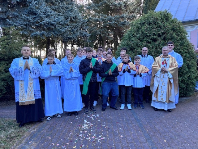 Zmartwychwstanie Pańskie - to najstarsze i największe święto chrześcijańskie. Czcimy w nim zwycięstwo Chrystusa nad śmiercią, piekłem i szatanem. Zmartwychwstały Chrystus przynosi pokój i nadzieję. O godz. 6.00 rozpoczęliśmy uroczystą procesję rezurekcyjną, wsłuchując się w bijące dzwony, obwieszczające całemu światu zwycięstwo Chrystusa. Liturgii przewodniczył proboszcz ks. Ireneusz Kosecki. W procesji wzięli udział przedstawiciele grup parafialnych. Przed Chrystusem ukrytym w Najświętszym Sakramencie, szli strażacy ze wszystkich jednostek OSP - z Zakrzewa, Gulina, Gulinka i Zakrzewskiej Woli, ułani z Kawalerii Ochotniczej w barwach 11 pułku Ułanów Legionowych przy stadninie Carino w Gulinie, poczty sztandarowe, członkowie Kół Żywego Różańca; niesiono różaniec, chorągwie i feretrony - to wszystko tworzyło niezwykle podniosłą atmosferę wdzięczności Chrystusowi za dar Zmartwychwstania. Po zakończonej procesji, ks. proboszcz odprawił uroczystą Mszę św. w intencji całej naszej parafii i zmarłych strażaków. W homilii ks. Piotr zaznaczył, iż z pomocą Chrystusa Zmartwychwstałego jesteśmy w stanie pokonać nasze ludzkie słabości, a każdy z nas ma inną drogę w poszukiwaniu Boga. Życzył wszystkim, by tak jak św. Jan Apostoł, każdy czuł się umiłowanym uczniem Chrystusa - mówił kaznodzieja. Młodzieżowa schola wraz z organistą Jarosławem Szczepaniakiem, pięknym śpiewem podczas Mszy św. Rezurekcyjnej, pomogła nam głębiej przeżyć tę niezwykłą Eucharystię. Na jej zakończenie ks. proboszcz podziękował wszystkim, którzy tak aktywnie włączyli się w jej przebieg, jak również za duchowe przeżycia Triduum Paschalnego.